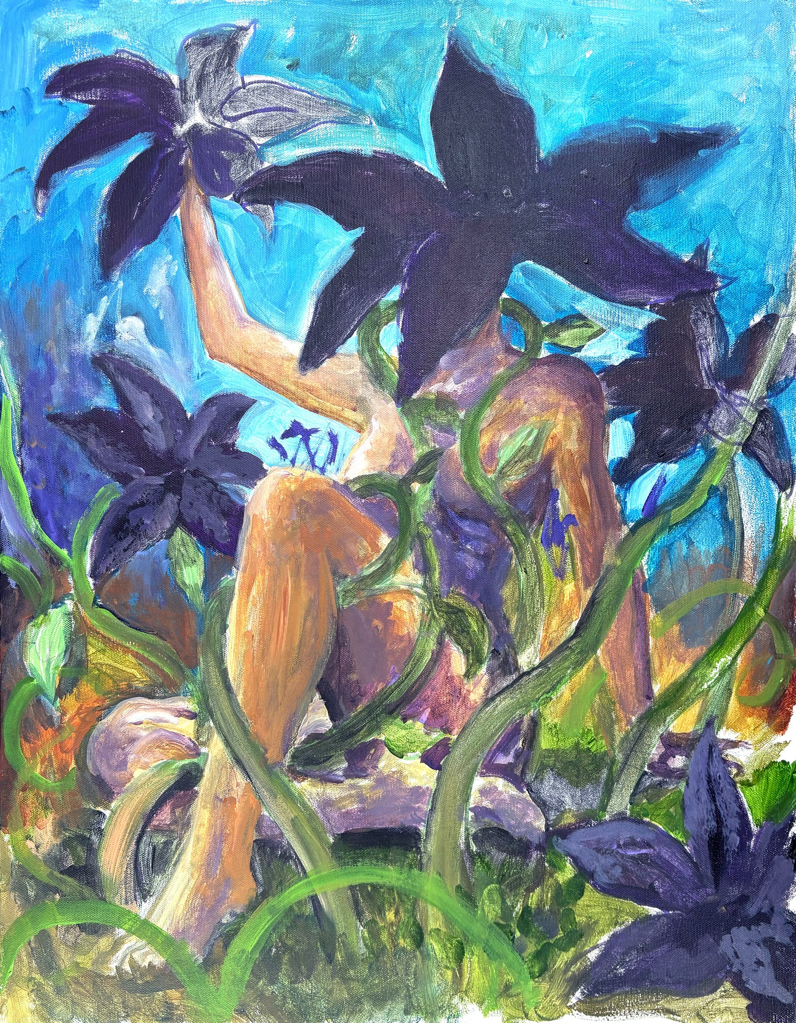 The claw rips through the scene painted by fellow Voyeur Bordello artist Josh Skeel like a car crash. Thick talons slice across the soft, borrowed landscape and tranform it into a scene of violence with style. The airbrushed colors hit like a neon bruise jerking the viewer out of a chiaroscuro day dream.